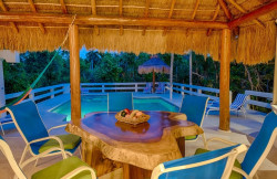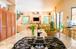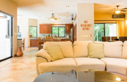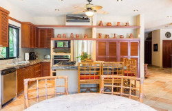 Its tasteful décor features an open-concept floor plan warmly decorated with Mayan artwork, a state-of-the-art gourmet kitchen complete with a breakfast nook overlooking the pool, and spacious, comfortable indoor and outdoor living areas.